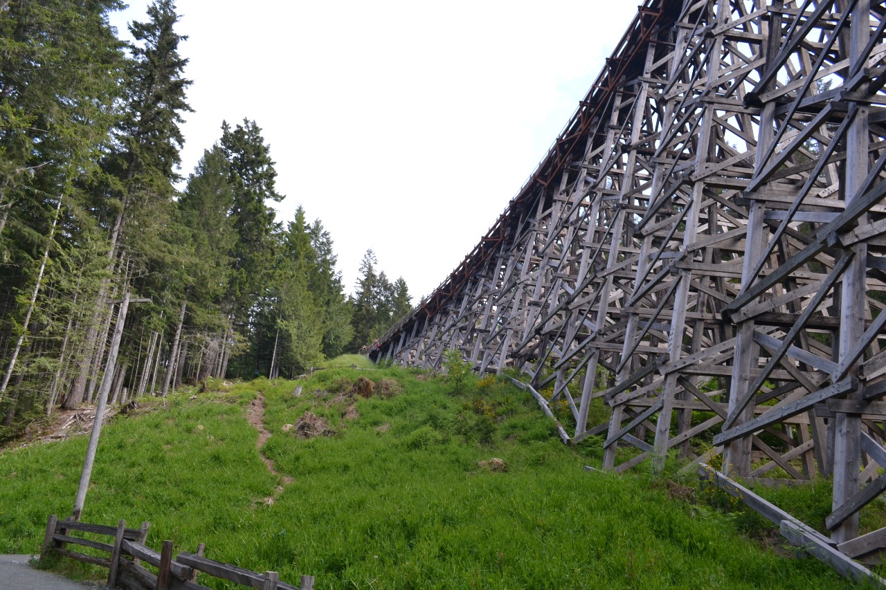 Vandaag samen met Kevin naar Kinsol Trestle South gegaan. Dit is deel van de Trans Canada Trail - een oud treinspoor omgebouwd tot wandelroute - die "the longest trail in the world" genoemd wordt. In het deel dat Cowichan Valley Trail genoemd wordt is deze oude houten spoorbrug gelegen. De brug werd in originele staat hersteld en vormt nu een toeristische attractie. Met een lengte van 615 voet en een hoogte van 145 voet is deze constructie een enorme prestatie geweest.