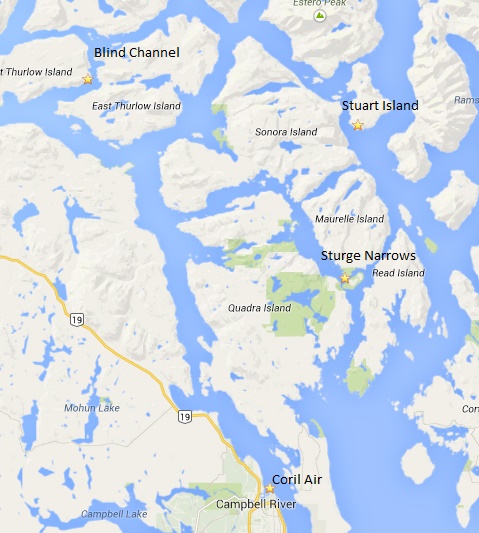 De dag begon vandaag met regen. Nadat wij ontbeten hadden werden de campers gereed gemaakt voor het vertrek naar Campbell River. Na enige tijd verdween de regen en kwam de zon weer te voorschijn. In Campbell River hebben wij ons gemeld bij Corilair, waar wij de Mail Run Flight zouden doen.
