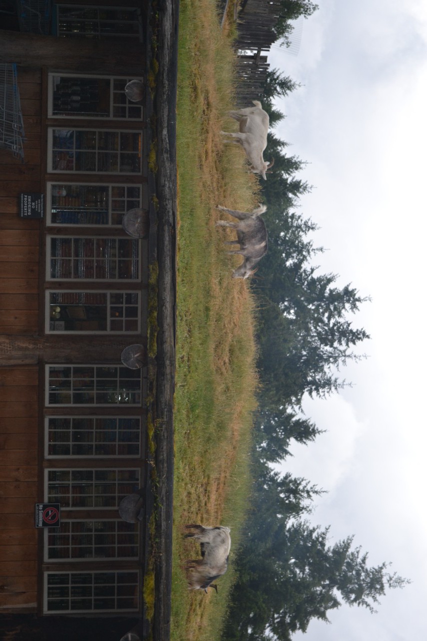 Op onze weg werd wel het plaatsje Coombs bezocht. In dit plaatsje leven de geiten op de grasdaken. Helaas waren de geiten niet blij met de regen en bleven de meeste in hun stal.