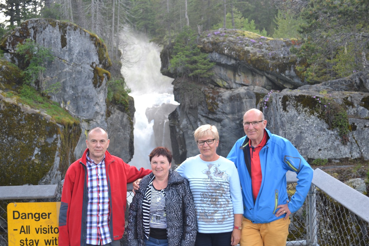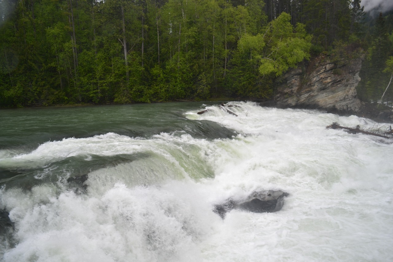 Na onze start hebben wij eerst nog even getankt. Hierna zijn wij de highway 5 gevolgd tot de splitsing met de highway 16 die wij toen zijn gaan volgen. Na enkele kilometers was aan de rechterzijde van de weg een waterval die wij moesten bezoeken. Dit waren de Rearguard Falls. Het betrof een grote stroomversnelling in de North Thompson River.