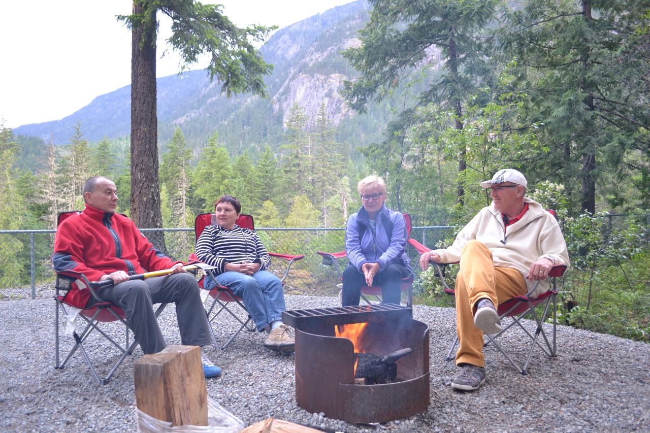 In Valemount aangekomen ( na 400 km) vinden we een schitterende camperplek aan de voet van prachtige bergen bedekt met sneeuw en ijs.