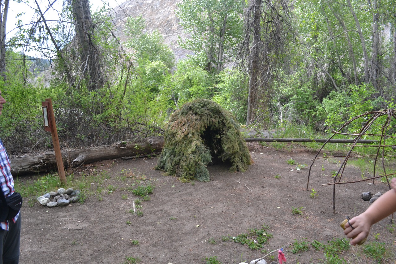 Bij dit postkoetsenstation was nu ook een "native village". Hier kregen wij uitleg over het leven van de indianen (shoeshoestam fon.) hier in de streek. De bouw en functie van de zweethut werd uitgelegd. Verder kregen wij uitleg over de opslag van etenswaren, het bewerken van huiden en de kookkunsten van de Indiaanse vrouw.