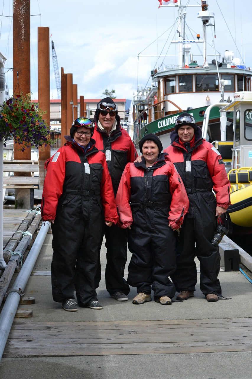Na het ontbijt heeft Arno eerst gebeld met Four Seasons (het camperverhuurbedrijf) in verband met een klein mankement aan het interieur. Aangezien wij daarvoor naar een bedrijf in Campbell River moesten (afspraak 13.00 uur) hebben wij vervolgens besloten om nog een nacht bij te boeken op camping Ripple Rock, en dan de whale-watching ook in Campbell River te doen (in plaats van in Victoria). Nadat wij de camper van Arno en Ria afgeleverd hadden, zijn wij met onze camper samen doorgegaan naar Eagle Eye adventures (eigenaar Jos Krynen). Om 14.00 uur zijn wij dan vertrokken –goed ingepakt in life-saving pak – met een soort life-guard boot (maar dan groter en krachtiger). Vanuit Campbell River zijn wij de zee opgegaan (Pacifische Oceaan/ Street of Georgia). Eerst hebben wij een kolonie zeeleeuwen gespot op een eiland, toen Jos een melding kreeg dat er orka’s gezien waren, echter anderhalf uur varen verder. Wij zijn toen met een snelheid van 60-65 km/uur daarheen gevaren en hebben daar inderdaad de orka’s aangetroffen. Een geweldig schouwspel (oftewel zoals ze hier in Canada zeggen: awesome!). Nadat we daar ongeveer een uur rondgedreven hadden en vele foto’s gemaakt hadden, zijn wij teruggevaren naar de haven in Campbell River. En dit was een ervaring op zich!! Inmiddels waren de golven een stuk sterker en hoger geworden dan eerder op de middag. Met een vaart van 60-65 km/uur over de golven geeft een ervaring die niet te vergelijken valt met welke achtbaan of wildwaterbaan dan ook. De boot werd 2-3 meter door de golven opgetild om dan vervolgens 2-3 meter lager met een klap neer te komen. En dat ongeveer anderhalf uur lang. Wij hebben ons alle vier kostelijk vermaakt. Alleen hebben Arno en Ria (zij zaten helemaal voorin) er enige spierpijn aan over gehouden. Na aankomst in de haven zijn wij eerst daar in een restaurant gaan eten en vervolgens de camper van Arno en Ria weer gaan ophalen. Daarna terug naar de camping. Aangezien iedereen bekaf was, zijn wij direkt naar bed gegaan en als een blok in slaap gevallen.