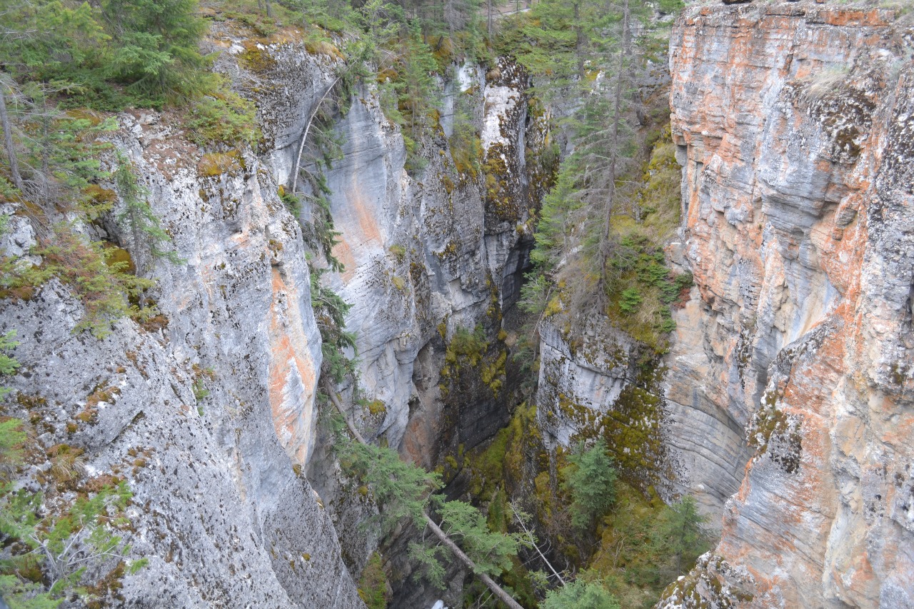 Vanmorgen bleek dat we ons “verslapen” hadden. We waren gisteren vanuit BC de nieuwe tijdzone ingegaan en hadden vergeten de klokken een uur vooruit te stellen. Hierdoor konden wij pas om 10.00 uur vertrekken richting Maligne Canyon. Op weg daarheen kwamen we een kariboe tegen. De canyon was de moeite waard om te bezoeken. Hier kun je zien welke kracht het water heeft.