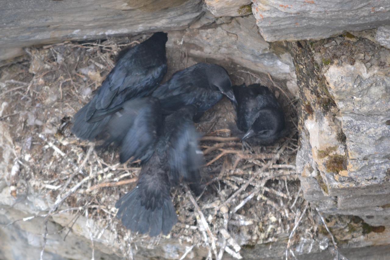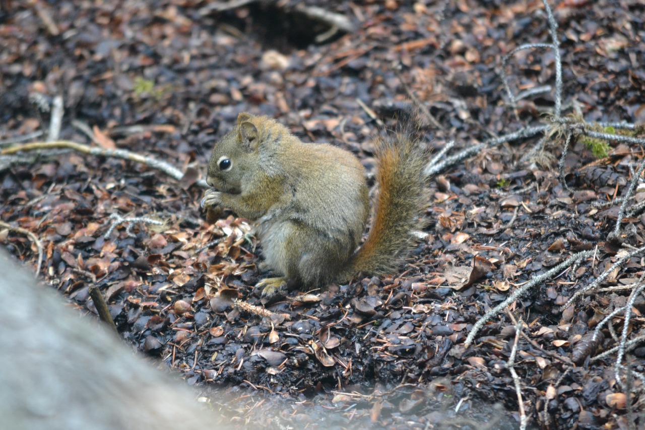 Bij de 2e brug over de canyon kregen we een mooi uitzicht op het nest van een Black Swift. Dit is een vogel die op onze raaf lijkt. Even later liet een eekhoorntje zien dat hij dol op dennenappels is.