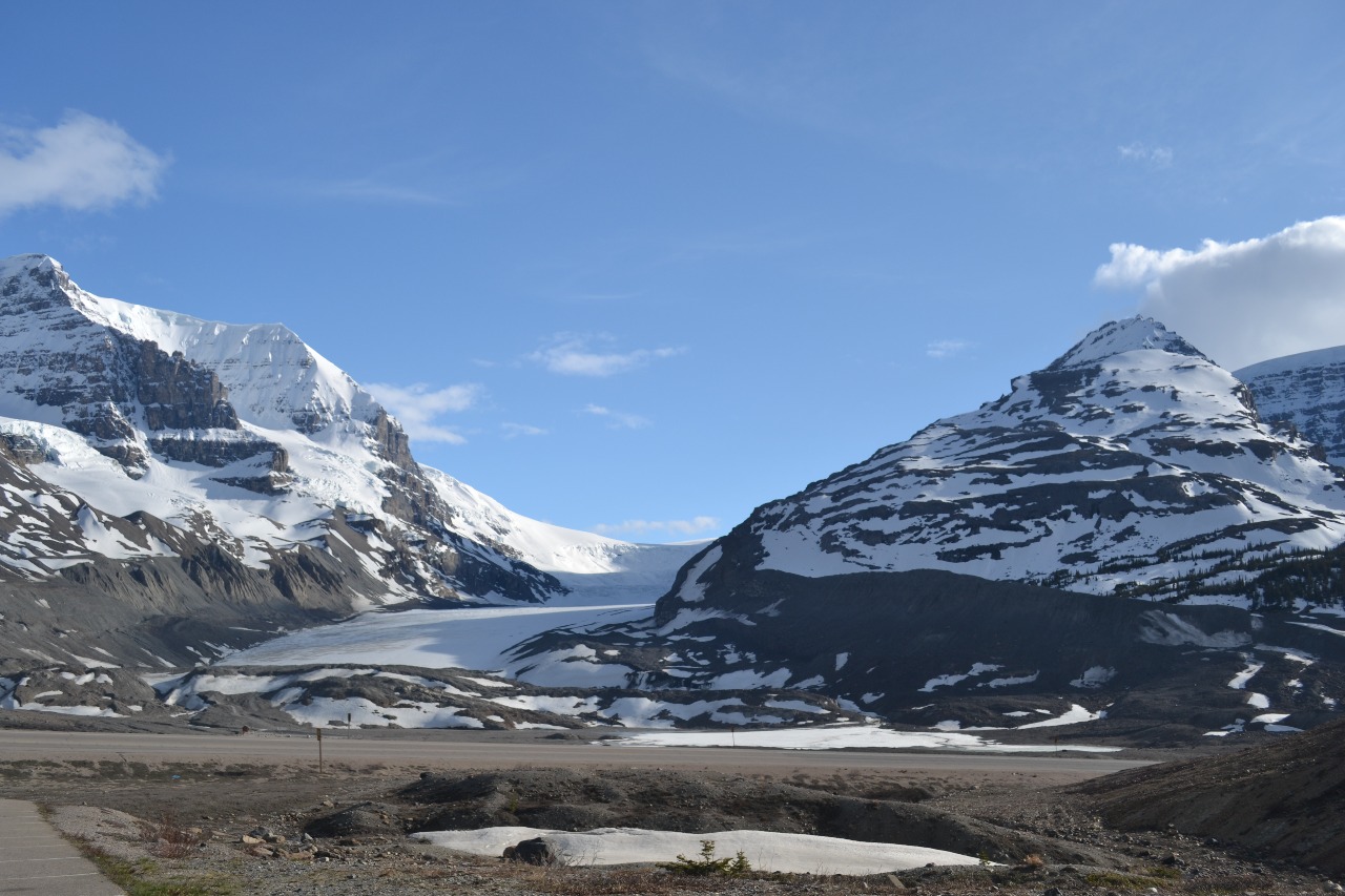Bij Columbia Icefield bleek dat we nog minimaal 50 kilometer tot het volgende dorp moesten rijden om een camperplaats te vinden. Gelukkig konden wij op de parkeerplaats van het Icefield Centre overnachten. Deze parkeerplaats was hiervoor speciaal aangelegd. Vanaf de parkeerplaats hebben we een prachtig uitzicht op de gletsjer.